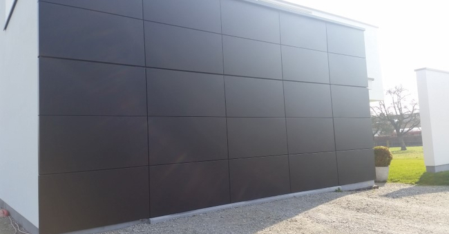 Onze invisidoors kunnen verschillende afwerkingspanelen hebben , gaande van aluminium , hout , Trespa , Rockpanel en zelfs het nieuwste Eternit Tectiva !