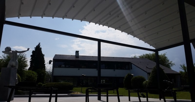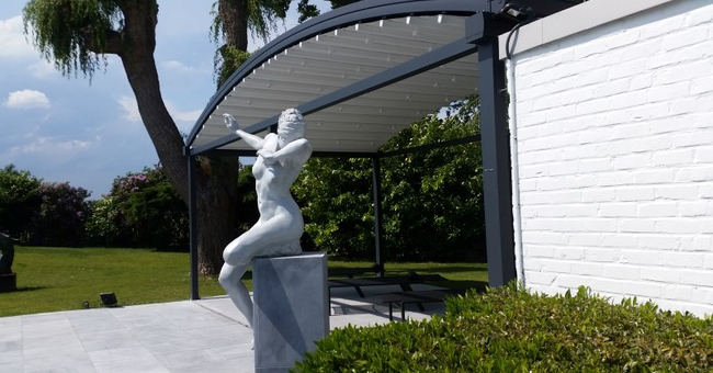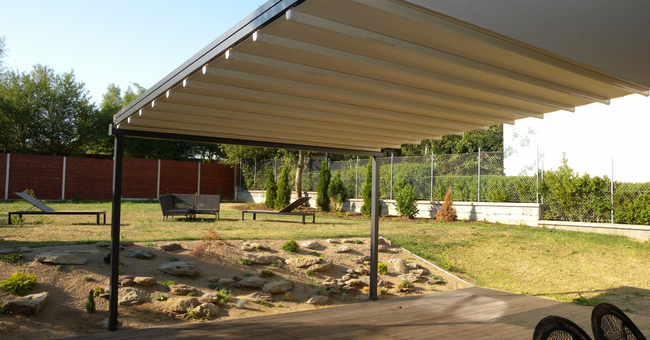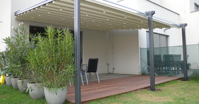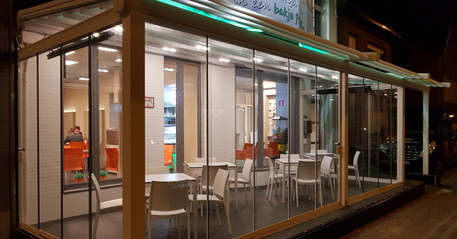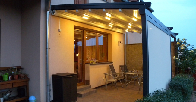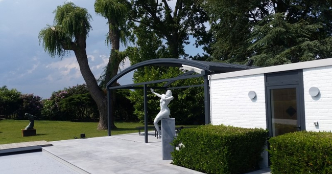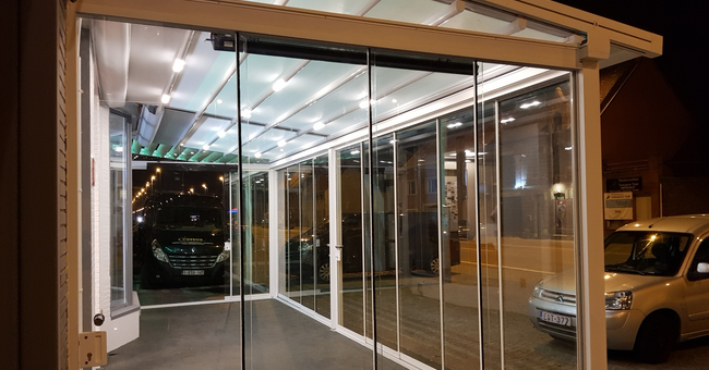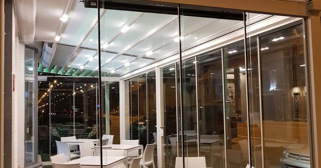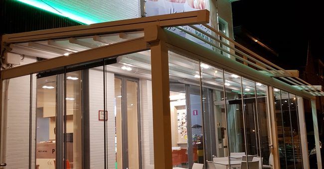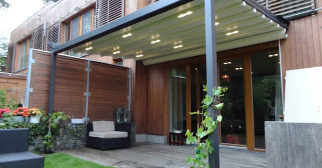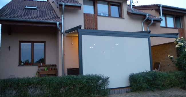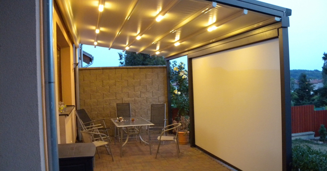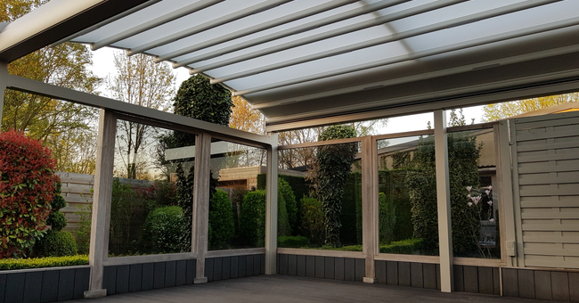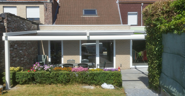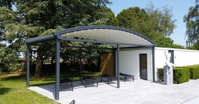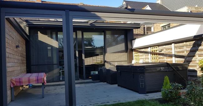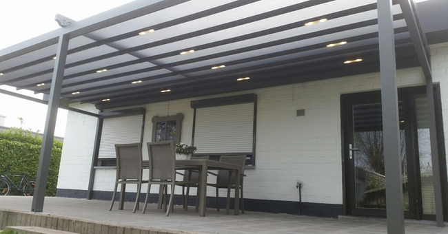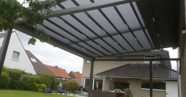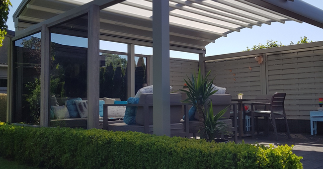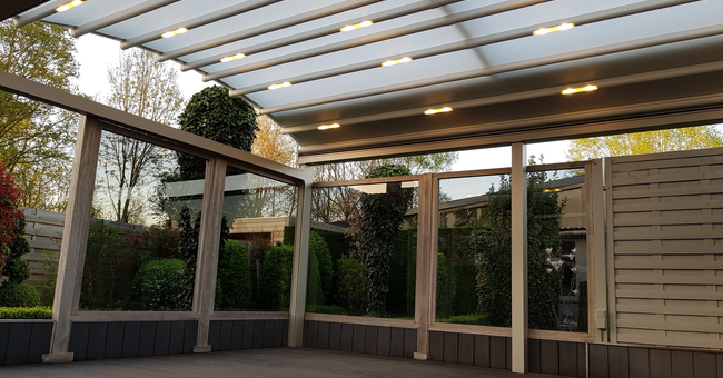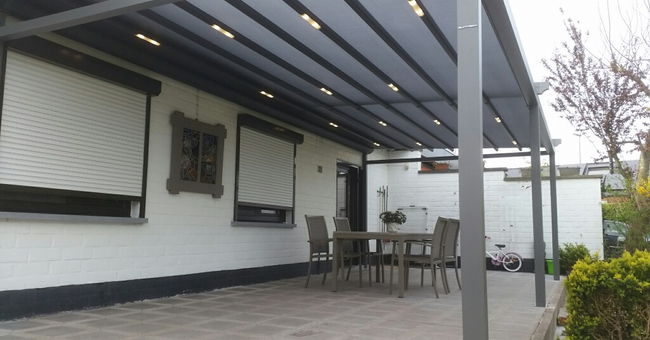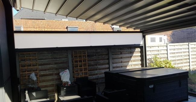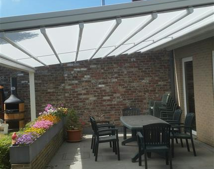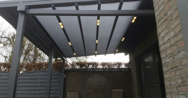 Systeem op maat gemaakt.Zowel vrijstaande als muurmontages mogelijk. Afmeting uit één stuk: breedte tot 13 meter bij 10 meter uitval en 130 m² overdekking.Windweerstandsklasse tot 11 Beaufort (tot 117 km/u).Geïntegreerde LED-verlichting is mogelijk (optioneel) met dim-optie en afstandsbediening.Eenvoudige montage, op maat gemaakt systeem in hoogkwalitatief geëxtrudeerde aluminiumprofielen,waterbestendig doek.Ook verkrijgbaar met waterbestendig transparant doek.Het systeem is uitgerust met geïntegreerde waterafvoer.Personalisatie opties: HDD dimbare LED verlichting, aluminium-schuifpanelen, windvaste screens, glaswandpanelen schuivend of vouwend.